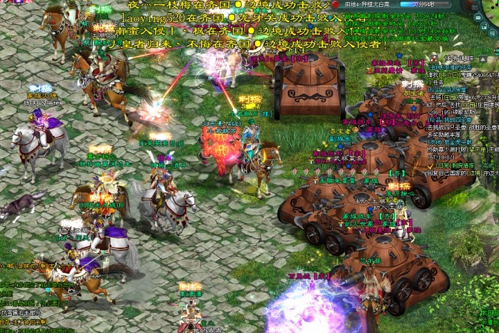 由于齐国先到达汉国任务点,做好的玩家比较多,全部集中在了复活点和任务点之间,围堵宋国玩家,以至于后来出现了大量的宋国家族战车,玩家都是坐车去任务点。