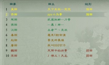 公元2011年02月16日正月十四 今天上线做刺探时,忽见国聊有人喊道:“小马哥当王了!”zyr小马哥?何许人也? 自从蚂蚱退位之后,齐国一直处于无王的状态。国战不能拉令,实在是不方便。新上任的王没有换任何一个官员。俗话说:一朝天子一朝臣。但是这新王上位却没有换臣子,这让人十分不