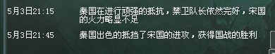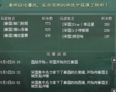 国战未开始前,宋唐拉刺探过秦,走淮阳,秦堵之,过边清之。宋唐2次走淮阳被堵,未能成功集结。直到国战开始20分钟,未能拿下国战复活点。