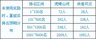 因此,在重组前我们准备了针对性的奖励措施,以消除两个区之间的等级差距。在领取并使用完奖励后,玩家排名情况预期分布如下: