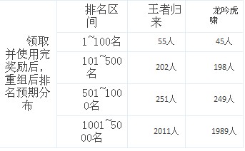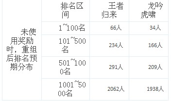 因此,在重组前我们准备了针对性的奖励措施,以消除两个区之间的等级差距。在领取并使用完奖励后,玩家排名情况预期分布如下: